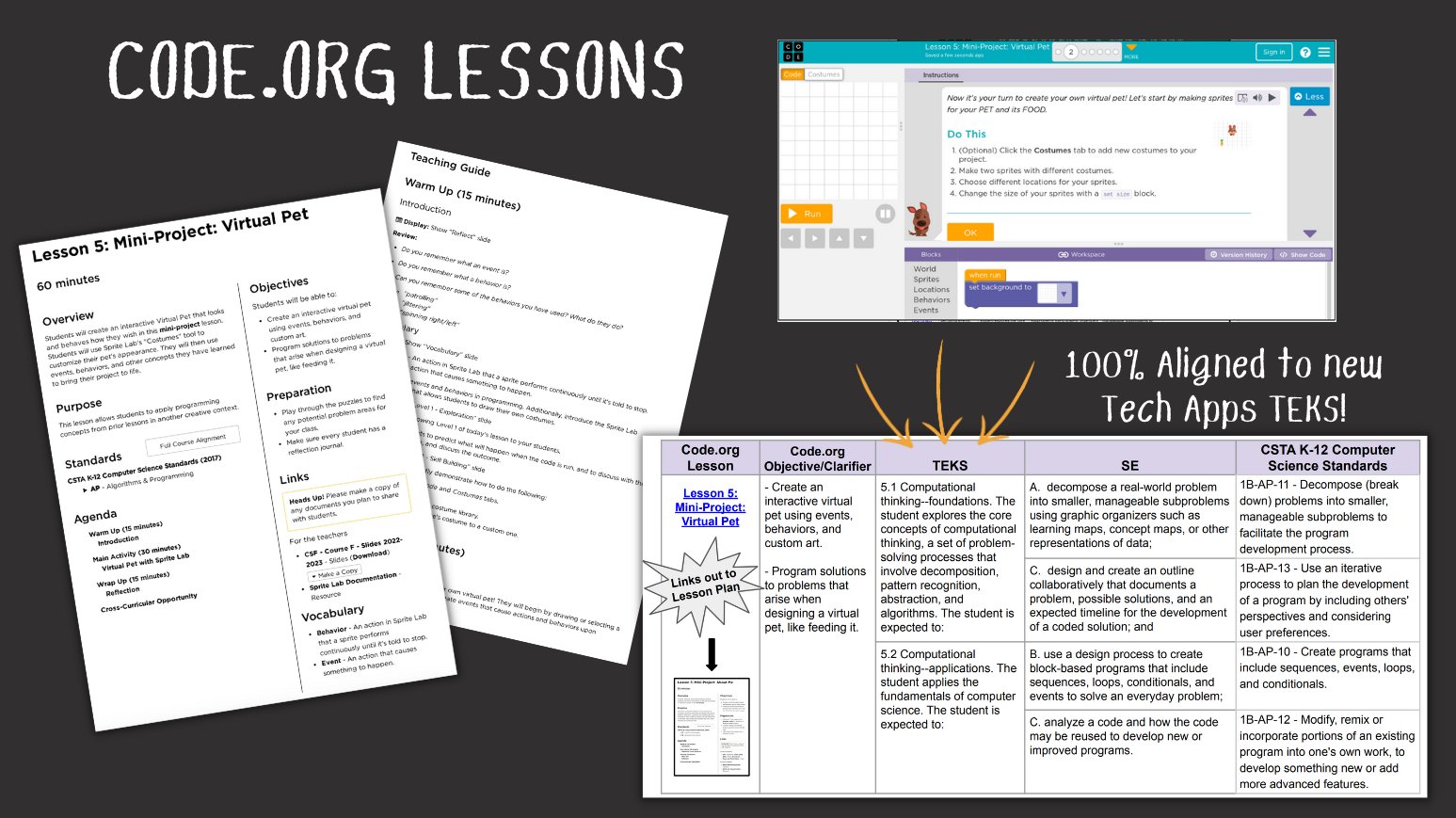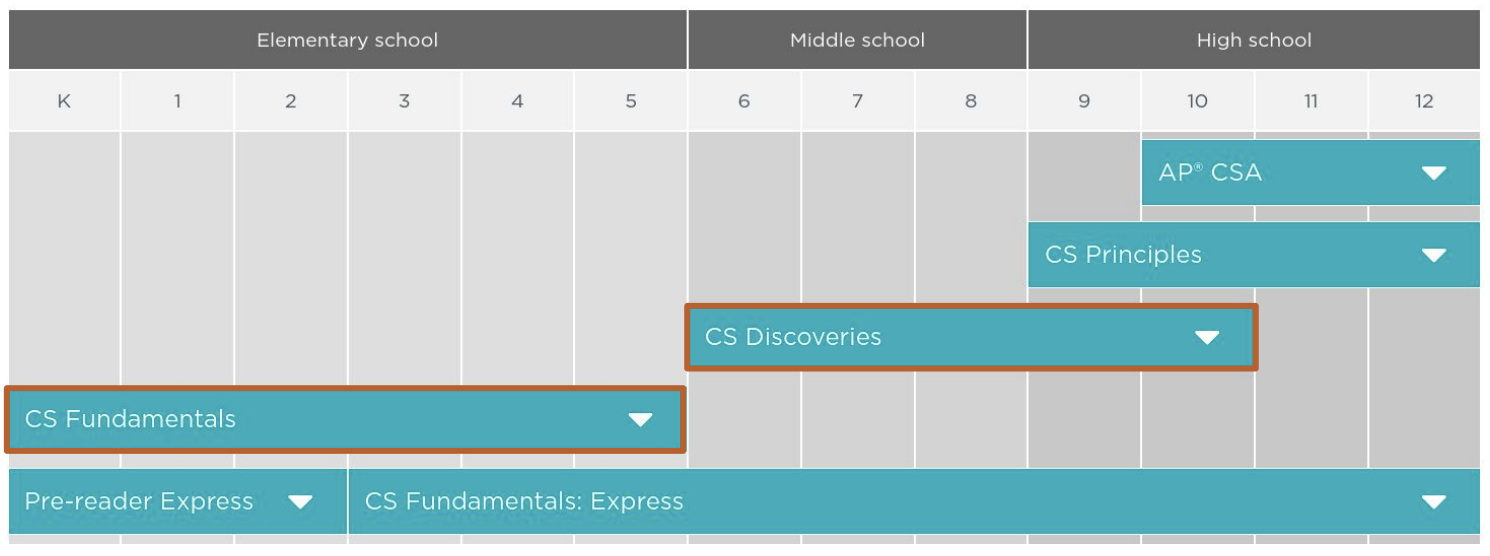 Code.org’s CS Fundamentals and CS Discoveries courses are now fully aligned to the Technology Applications TEKS for K-8 (adopted in 2022).