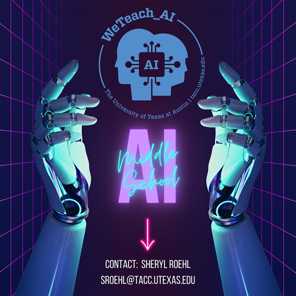 The WeTeach_AI Middle School Hub is an innovative initiative focused on enriching Artificial Intelligence (AI) education in Texas middle schools. By participating in our program, educators gain invaluable insights into AI concepts, including self-driving cars, language models and machine learning. We explore AI fundamentals and guide students in constructing AI simulations using platforms like Calypso, fostering essential skills in creative problem-solving and imaginative design.