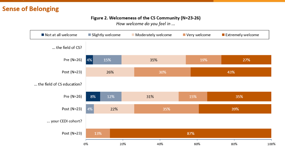 Changing the Face of CS EducationEPIC's Computing Educator Diversity Initiative (CEDI) is helping teachers from historically underrepresented groups earn CS teaching certificationbyDamian Hopkins April 18, 2022 Q&A Feature Story Migrated from TACCIn 2016, the Expanding Pathways in Computing (EPIC) team launched WeTeach_CS to increase the number of certified computer science (CS) teachers in Texas and create a foundation for expanding access to CS education to a more diverse range of students across the state.The program has made a significant impact, helping almost 600 Texas teachers earn their CS certification. While we rejoice over the number of new CS teachers, the makeup of that teacher population revealed an area of opportunity. Knowing that providing students with role models with whom they can identify helps to build their CS identities, EPIC sought to bring in a more diverse teacher cohort so that more students, no matter their demographic background or previous CS experience, could find CS educators to relate to and be inspired by.This led one member of the EPIC team to ask an important question: Why couldn't scholarships for professional development be provided to teachers of color to enable and empower them to earn their CS teacher certification? From there, with a generous initial investment from the National Science Foundation and supplemental funding to support a second cohort secured through Microsoft, the Computing Educator Diversity Initiative (CEDI) was born.CEDI consists of in-service teachers from historically underrepresented groups in CS who work within a community of practice and together deepen their CS knowledge, pedagogical skills, and equitable strategies and are supported to obtain their high school CS teacher certification.While many professional development and preparation programs struggled to recruit teachers during the pandemic, 107 educators applied to be part of EPIC's Microsoft-supported CEDI Cohort 2 during the four weeks the application process was open — a testament to the significant need for more inclusive, supportive teacher communities like the one CEDI helps to provide.Thoughtful Program DesignThe structure of the CEDI program was intentional at every turn. CEDI ensured that teachers from historically underrepresented groups were provided funding to partake in professional development. The program was thoughtfully designed — from recruitment to completion — to make teachers feel welcomed and empowered to succeed. *Percentages sum to greater than 100%, as participants were asked to select all that apply. **The three participants who selected White also selected either Black or African American, or Hispanic or Latino. "There aren't that many teachers of color to draw these young people into CS to show them, ‘Hey, if they're doing it, maybe I can do it, too,' said CEDI participant Christopher Franklin, who has been a teacher for 17 years and currently teaches middle school CS, Robotics, and Engineering classes at Dulles Middle School in Sugar Land, outside of Houston.The program emphasized inclusion during the recruitment phase and stressed that candidates did not need prior CS experience to apply. It was important as well to choose a cohort leader that reflected the diversity of the participant group itself, and who could act as a mentor as teachers grappled with new content and pedagogical strategies for creating more inclusive classroom environments.The program sequence was structured around educators' schedules and designed to build community first. Gradually diving into the content, CEDI began with Introduction to Programming and Foundations of CS for Teachers courses. During this time, the cohort met synchronously once a week, giving them an opportunity to work through the challenging content together.After six programming sessions and six weeks of the Foundations of CS course, the series concluded with a Strategies for Effective and Inclusive CS Teaching course. The most recent cohort is proof positive of the effectiveness of these recruitment and community building practices. The demographics of the teachers selected are: 50% Black or African American, 35% Hispanic or Latino, and 46% female. The completion rate was 92%. Allen Antoine, CS Education Specialist "The status quo cannot remain the same when it comes to the representation of historically excluded students in computer science," said CS Education Specialist Allen Antoine. "CEDI looks to engage all students by providing teacher role models that look, talk, and understand the unique backgrounds of the diverse future computer scientists that we want to engage. This initiative is a large undertaking, but I am excited to be one of the people leading the effort."Lessons LearnedCEDI also focused on three research questions addressing the unique experiences of Black and Hispanic teachers as they learn to teach CS. After participating in the online professional learning portion, all participants were asked in a survey to share their perspective about their experiences. Six teachers also participated in one-on-one interviews as a part of a Q&A series about CEDI. Only information obtained through interviews is shared here, as the surveys were taken anonymously.What are the primary barriers to becoming a CS teacher as perceived by Black, Hispanic, and Latino/a educators?Survey results indicated that concerns about knowledge and experience, getting CS teacher certified, lack of school support, student factors, and insufficient resources were the top barriers to teaching CS.Overwhelmingly, CEDI participants shared their own anecdotal experiences about the lack of representation they saw in the field as students themselves — and the lack of empowerment they felt from educators."When I was a high school student, I wanted to learn CS but was told I wasn't the type of student who should bother. That's why I always thought CS was for ‘smart people.' When I became a CS teacher, I knew that